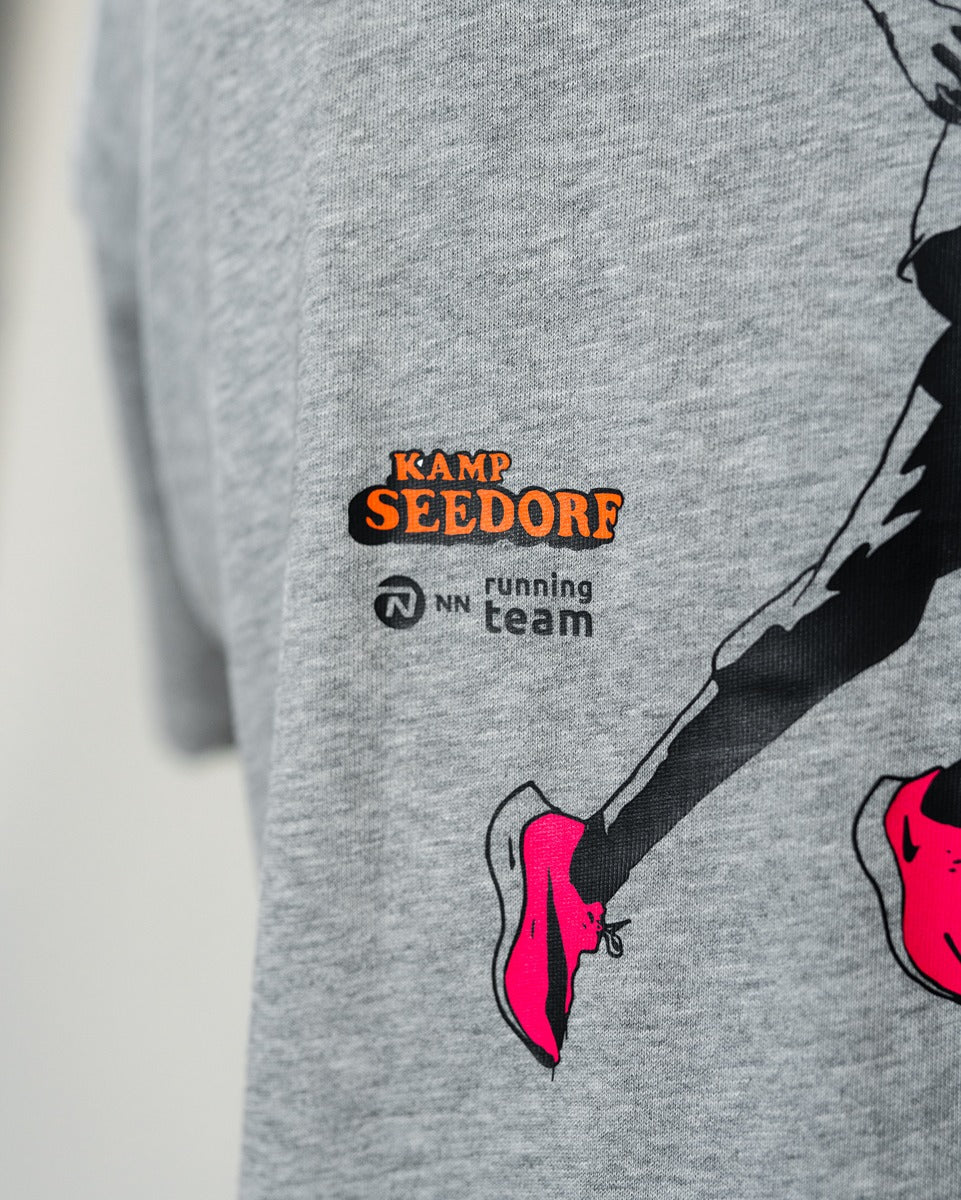 - Embroidered Swoosh at the left chest accompanied by NN Running Team + Kamp Seedorf art work